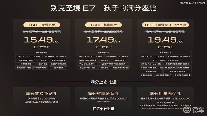 同时,官方推出满分上市礼遇分别为满分置换补贴礼、满分智享逍遥礼、满分用车无忧礼。