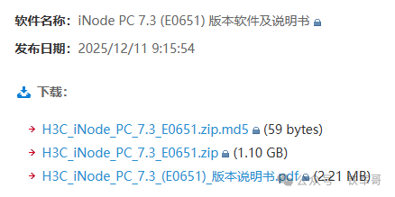 然后就是iNode版本,官网有点娱乐的成分在,最新的E0651版本是在2025/12/11上传的。
