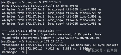 简单测试一下业务访问情况,没有问题,就是这里的网关名称怎么显示成bogon了?查遍了资料,这通常是因为主机名解析出现了小插曲。虽然不影响核心功能,但这就像新买的衣服上有个小污点,看着总有点别扭。