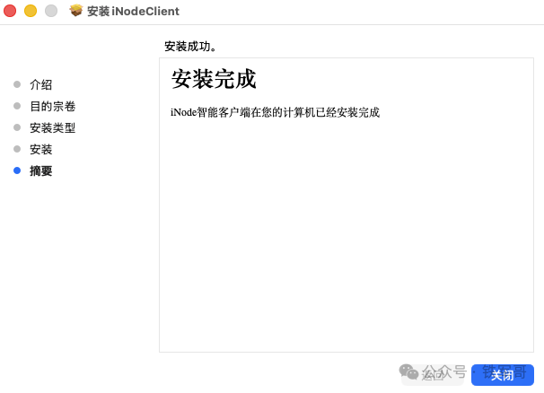 等待安装完成,单击【关闭】。然后,在启动台找到iNodeClient应用程序并启动。