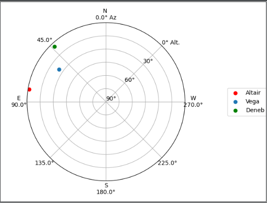 讯享网from astropy.coordinates import SkyCoord from astroplan import FixedTarget altair = FixedTarget.from_name('Altair') vega = FixedTarget.from_name('Vega')