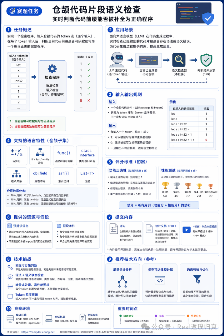 信息图应包含:赛题背景、核心任务、输入输出说明、评分标准或关键挑战。风格简洁明了,适合演示讲解。