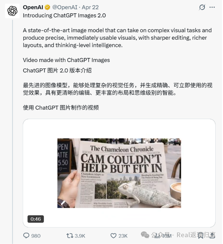 Real返璞归真《2分钟速览 | ChatGPT Images 2.0 | 完爆Nano Banana | 开启图像AI“思考时代”(含多风格图效果实测)》