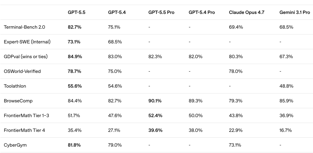 GPT5.5 的表现在同类中显得比较突出|图片来源:OpenAI