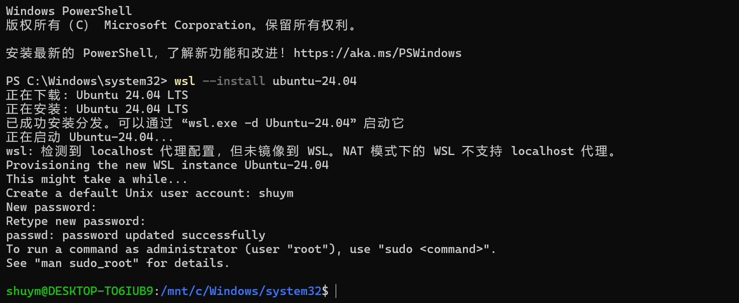 wsl –install ubuntu-24.04(这是 OpenClaw 官方建议的 Linux 版本)