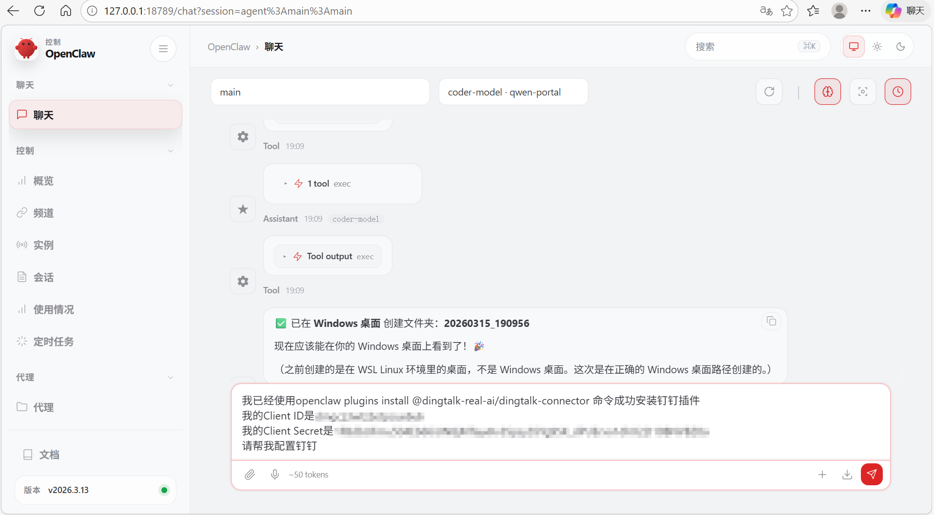 我已经使用openclaw plugins install @dingtalk-real-ai/dingtalk-connector 命令成功安装钉钉插件 我的Client ID是xxx 我的Client Secret是xxx 请帮我配置钉钉