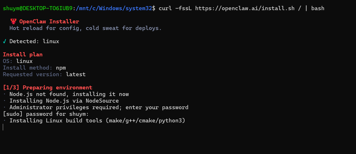 curl -fsSL https://openclaw.ai/install.sh | bash