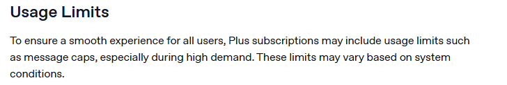 根据OpenAI 官网 ChatGPT Plans 定价页 和 发布说明 最新数据显示:值得注意,目前openAI用户文档以及删除了对于不同订阅用户的针对对话具体使用次数,只说了为了所有用户的体验,可能在高峰时期进行限制(所以在不高峰可能会有更多使用次数),如下图所示