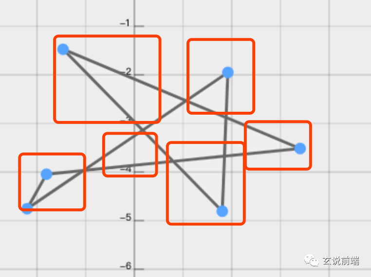 分出来了多个包围盒,这种情况在图形特别复杂的时候,包围盒这个方案就有点粗糙了。