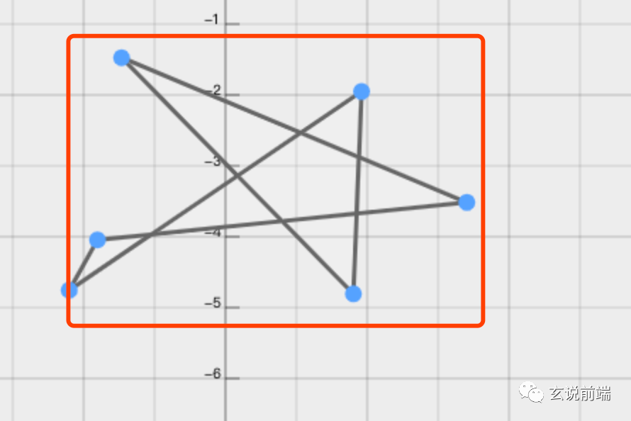 有没有其他方案了,在游戏界有一个普遍使用的方案——包围盒,什么是包围盒呢?我们以上面的图形举例,外面画的红线框就是这个多边形的包围盒。