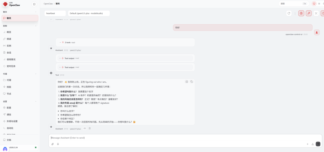 设置完成后,OpenClaw 正式拥有了“大脑”。