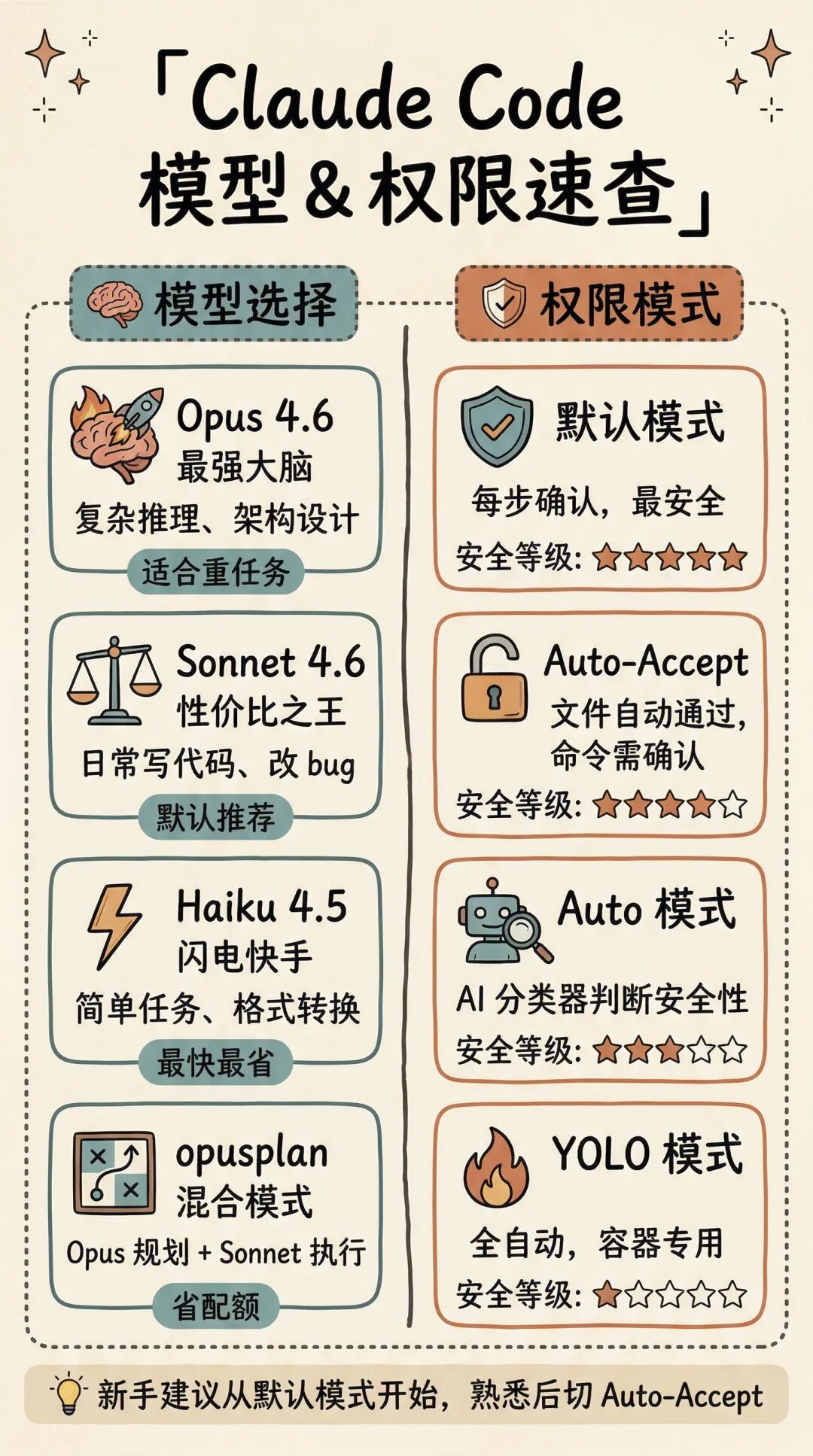还有一个特别值得说的模式:opusplan。它在 Plan 模式下用 Opus 来思考方案,确认执行后自动切回 Sonnet 来写代码。相当于用最强的大脑做规划,用性价比最高的手来干活,对于想省配额又不想牺牲规划质量的同学来说,这是一个很好的折中。
