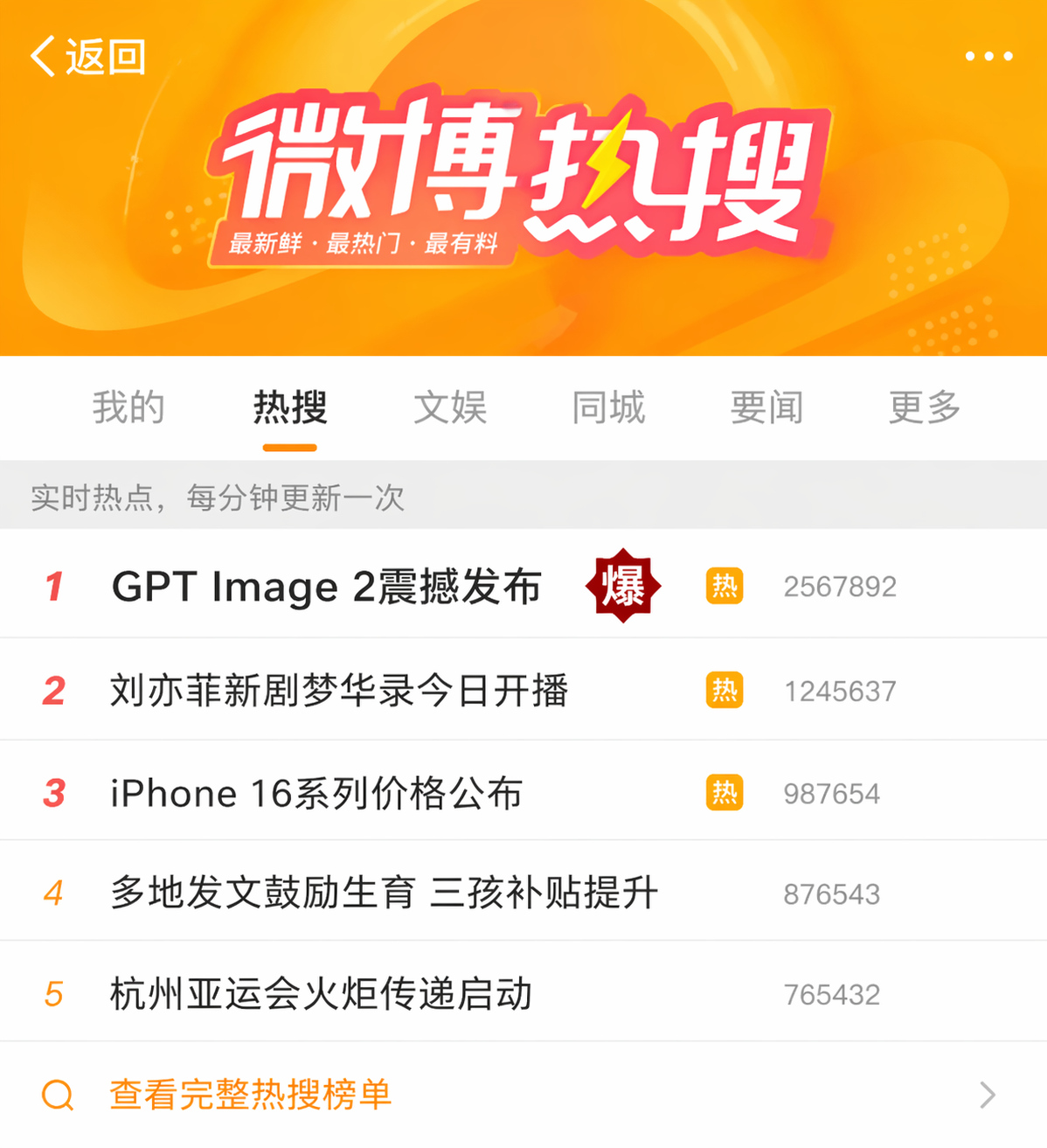 画一个微博热搜截图,第一条:GPT Image 2震撼发布,带爆字和热字