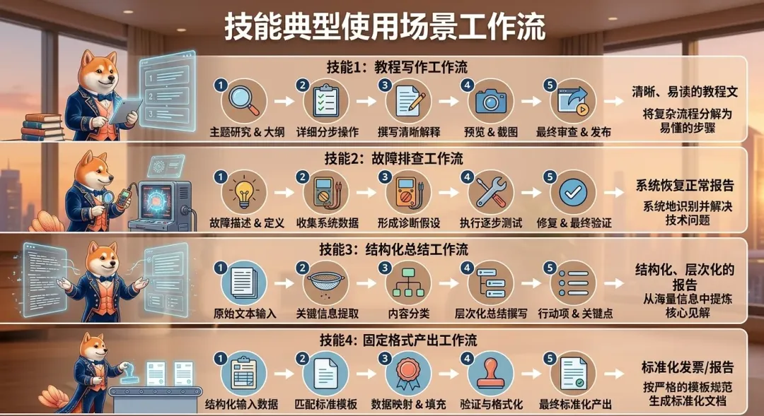 图:教程写作、故障排查、结构化总结、固定格式输出,这些都有很强的 Skill 化价值。