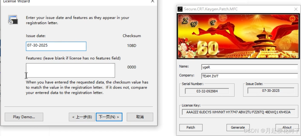 7、复制注册器中 Issue Date ,粘贴到 SecureCRT 软件中 → 下一页