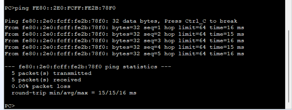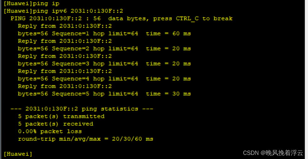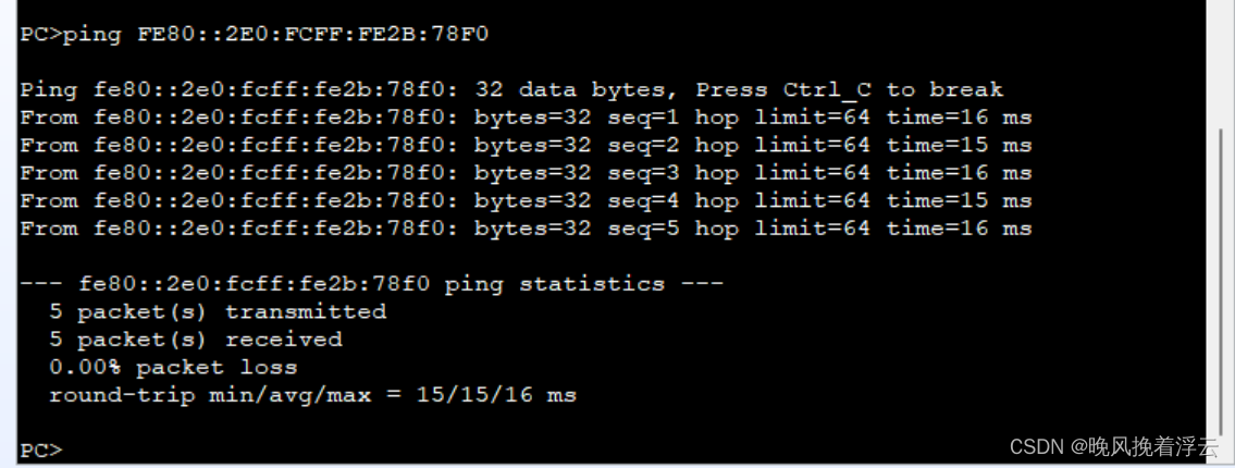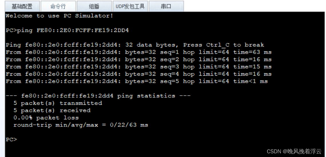 我们与IPv4一样,ping一下;
