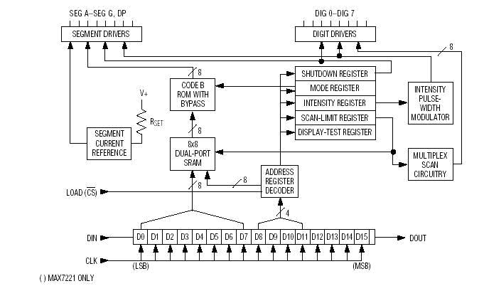 图2 MAX7219的内部引脚分配