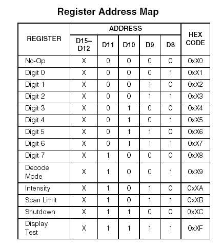 MAX7219有下列几组寄存器:(如图3)