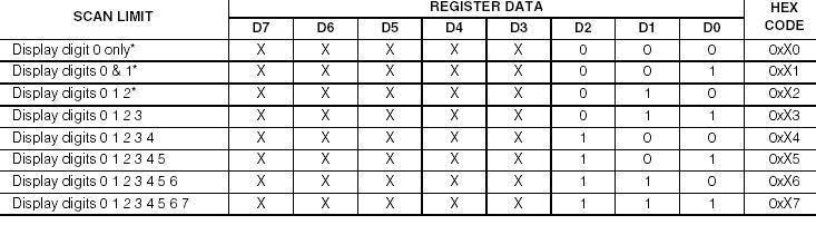 图5 MAX7219的扫描界限控制寄存器