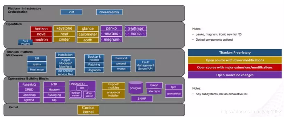 蓝色代表由titanium cloud项目创建,starlingx继承的项目