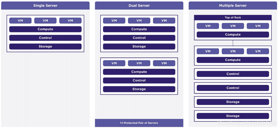 * 控制、计算、网络、存储功能部署在同一台节点上