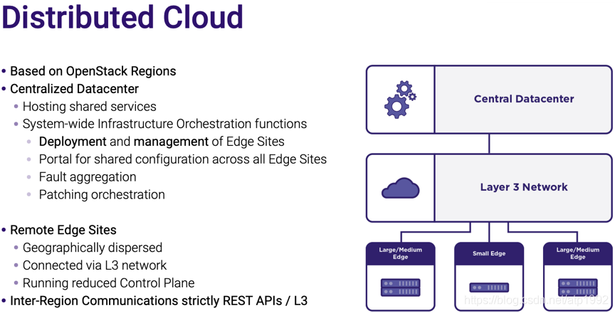 讯享网而边缘计算的发展时间还比较短,大家对边缘计算的定义还有争议,但是不影响我们的理解。边缘计算不仅指端设备的计算,也指边节点的计算,边指端云中间,用于弥补端的计算力不足以及云延迟的产物。按照业内的定义边缘计算分物边缘、移动边缘、云边缘,而StarlingX就是聚焦于边边缘的。