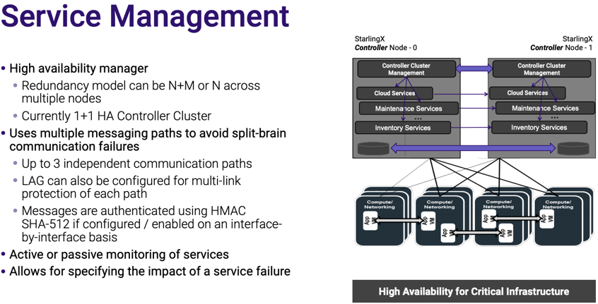 - Currently used in StarlingX to provide 1+1 HA Controller Cluster.