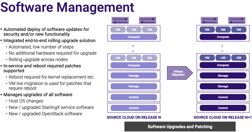 The StarlingX NFV project is a new repository that provides High Availability management of VMs and Software Patching & Upgrade Orchestrator Services.
