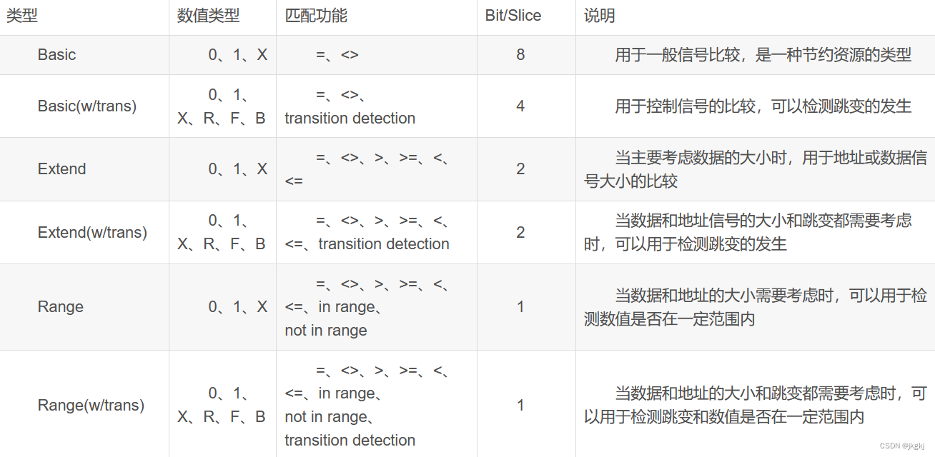 Match type 触发类型的选择,这里一般默认选择basic w/edges,这样可以设置当信号处于0,或1,或者上升,下降沿时触发。这里R代表上升沿,F代表下降沿,B应该代表只要发生变化就触发