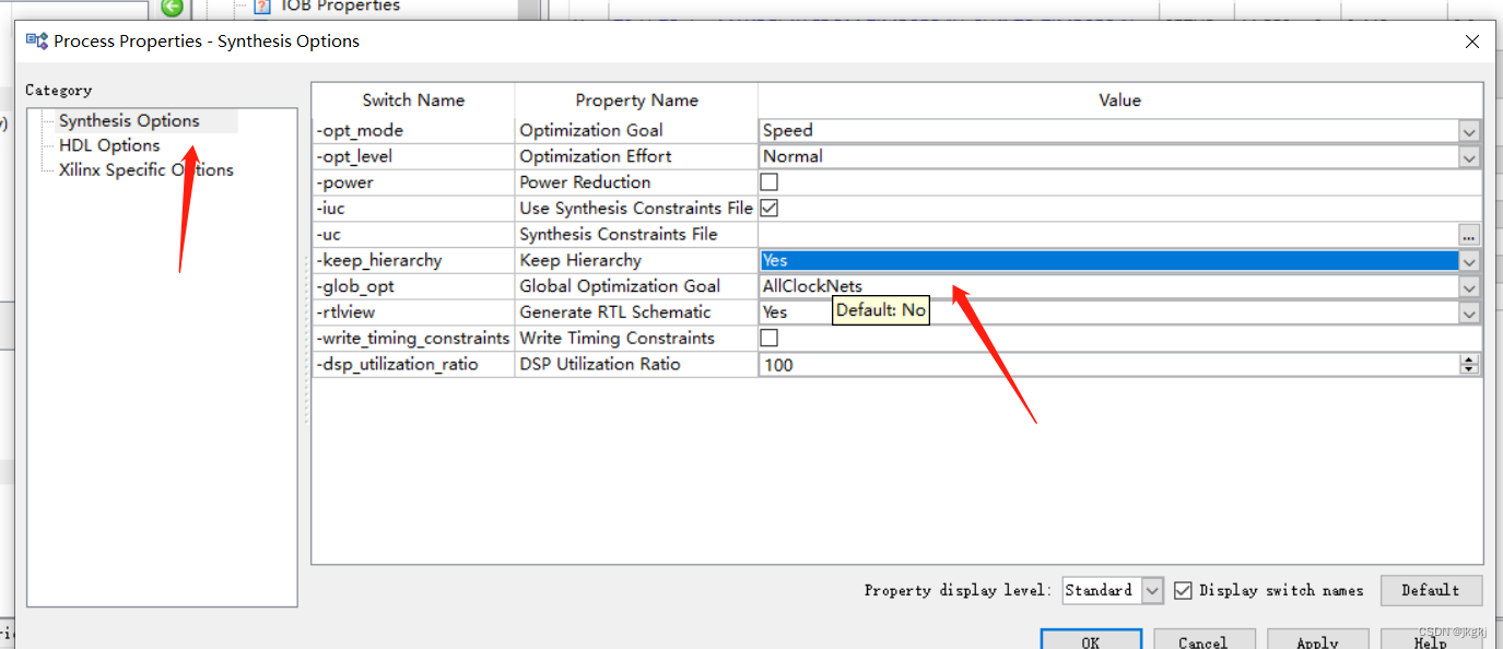 在keep hierarchy 中选择yes. 即设置综合时保持层次,这样在综合后的电路中会保持模块化,方便我们找到所想观察的信号。否则,很多信号会被优化掉,chipscope找不到想要的信号来观察。