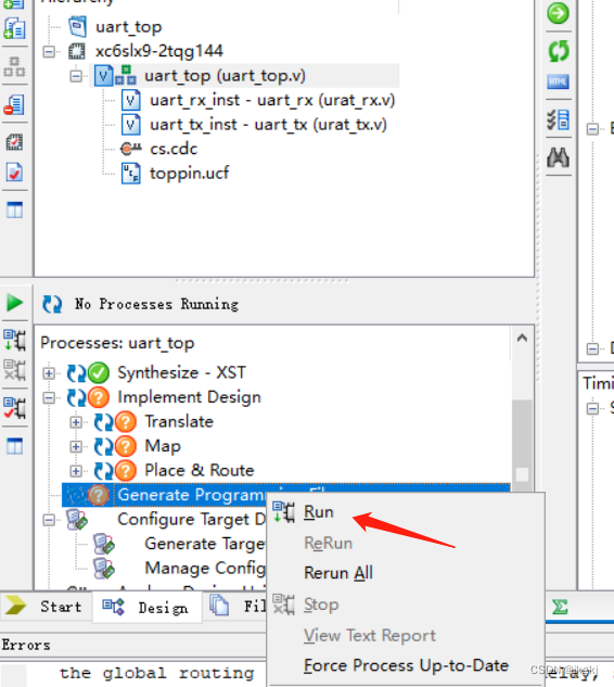 在打开它之前,有一个很重要的操作,右键synthesize-XST,选择process properties.