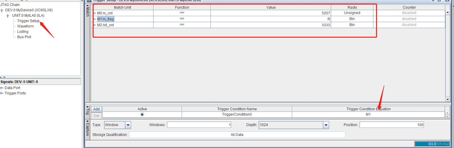 触发位宽:用户需要观察信号的总位宽。