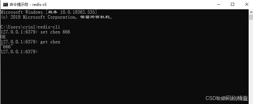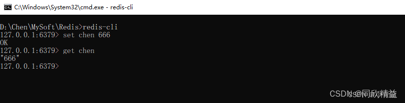 打开 cmd 窗口,输入 redis-cli 连接 redis服务,并做简单验证