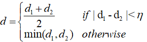 ,考虑深度突变,则其中所有点的视差的插值公式如下: