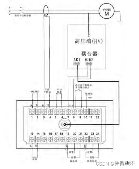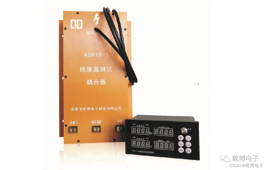 乾博电子YNY-10H高压绝缘监测仪采用直流高压注入法对电缆或电机进行绝缘测量,测试电压2500V,仪器与电路接触器或断路器辅助触点联锁控制,实现线路通电时绝缘监测仪退出监测与电网分离,线路断电时绝缘监测仪开始对线路进行不间断绝缘监测,虽然绝缘监测仪只是在母线断电后监测但考虑到其直接与高压母线连接因此绝缘监测仪还配耦合器,用于对线路和绝缘监测仪主机的保护。