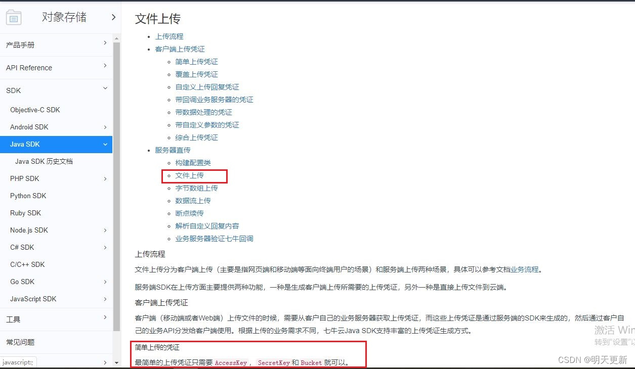 七牛云提供了多种方式操作对象存储服务,本项目采用Java SDK方式,地 址:Java SDK_SDK 下载_对象存储 - 七牛开发者中心