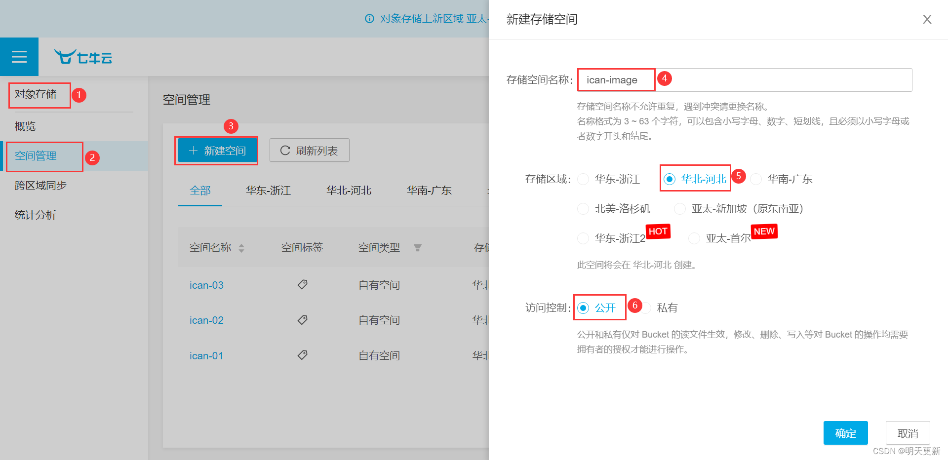 要进行图片存储,我们需要在七牛云管理控制台新建存储空间。点击管理控制台首页对象存储kodo,页面跳转到新建存储空间页面: