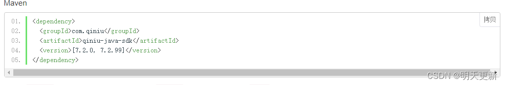 使用Java SDK操作七牛云需要导入如下maven坐标:(我们搭建项目的时候已经导入。)