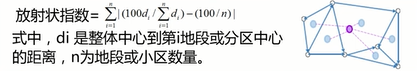 不单纯是从抽象的形状入手,而是综合了各组成部分的位置特征。通过距离(可以结合时间、阻力等线路因素)反映区域中心与区内各部分之间的具体联系。