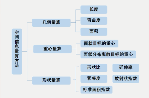 空间信息量算:通过长度、周长、面积等量测指标对地理分布或现象进行描述。