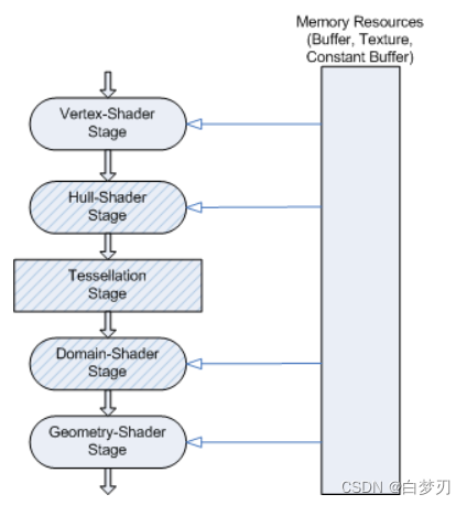 图形学中,Tessellation是一个渲染阶段,叫做细分着色器。但是网络上大量资料使用的名词是曲面细分着色器,这样翻译实际上是不准确的。因为这个阶段实际上只有细分,希望大家遇到这些名词时能够辨析一下它们的区别。参考下图来自Tessellation Stages:
