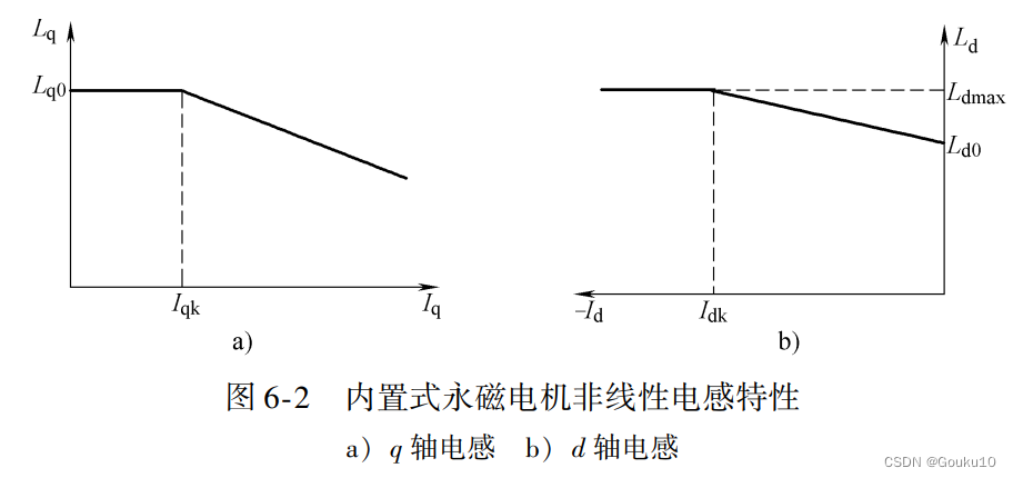 Lq:q轴的气隙小,磁阻小,受磁路饱和影响比d轴影响大,随iq增大而大大降低,通常有1到3倍的变化。电枢反应引起的磁路饱和主要存在于q 轴。