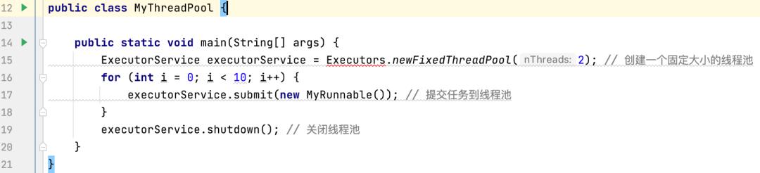 使用线程池是一种更加高效和可控的多线程创建方式。Java 提供了Executor框架来管理线程池,可以通过ThreadPoolExecutor 类来创建线程池,并通过 submit() 方法提交任务。