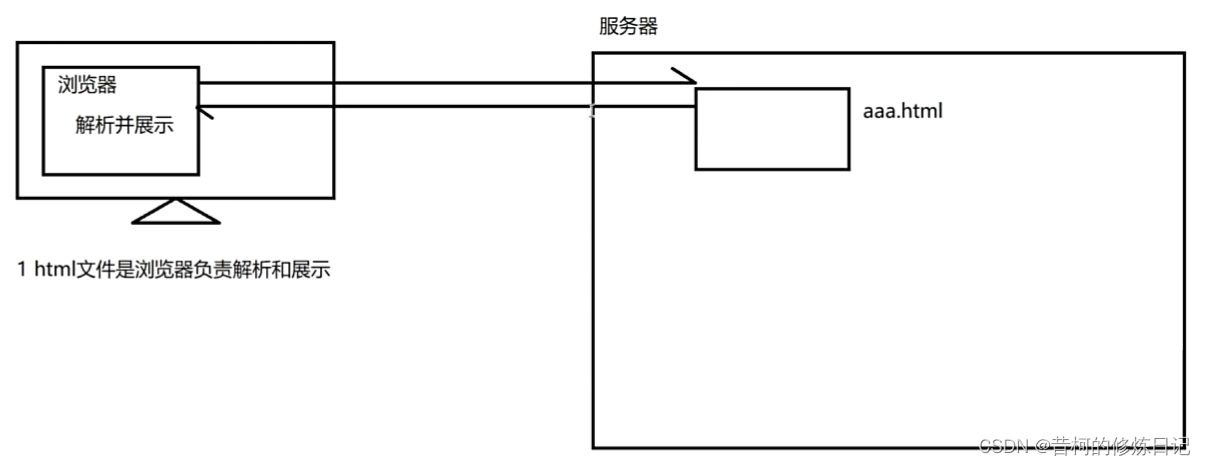 aaa.html文件放到服务器中,由浏览器负责解析和展示。自己学习时html文件放到本地效果也是一样的。