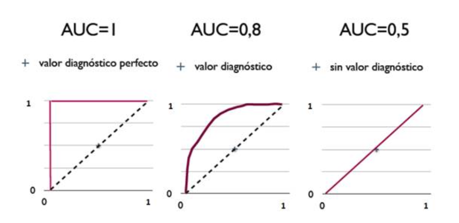 0.5 < AUC < 1,优于随机猜测。这个分类器(模型)妥善设定阈值的话,能有预测价值。