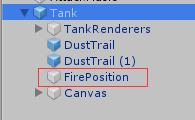创建一个空物体GameObject改为FirePosition,并放在Tank下,作为初始化子弹发射的位置,