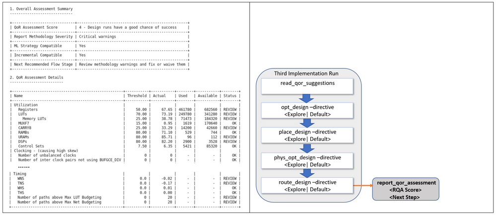 请观察 RQA 与 RQS 的结合作用,它帮助我们改进了 QoR,并且将 RQA 得分从 3 提升到 4,最后,在时序收敛的最后冲刺阶段,它引入了 ML 策略和增量合规性,以实现设计收敛。