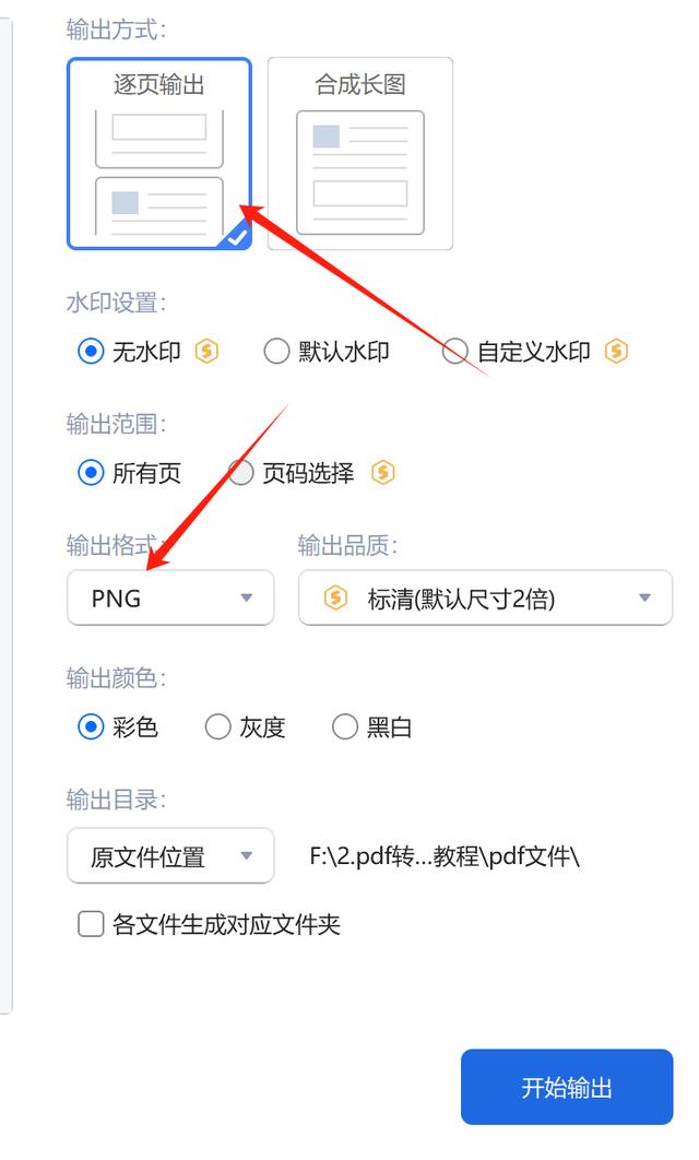 步骤3:点击右下角的“开始输出”按钮即可吧PDF转成png图片