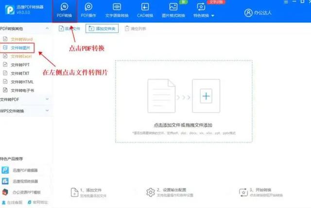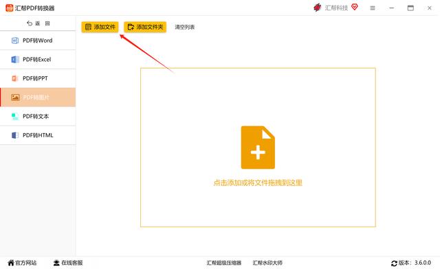 步骤3:点击左上角的“添加文件”按钮,把需要转换的PDF文件导入到软件中,这里可以添加多个,数量不限