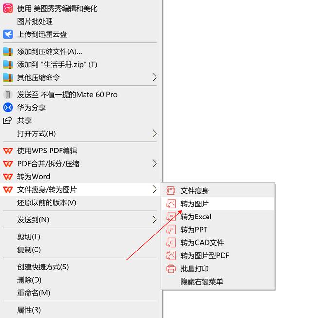 步骤1:打开PDF所在的文件夹,在PDF文件上右击,在下拉选项中选择“转为图片”选项
